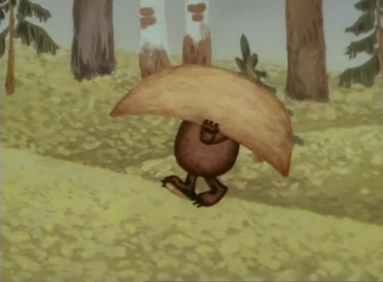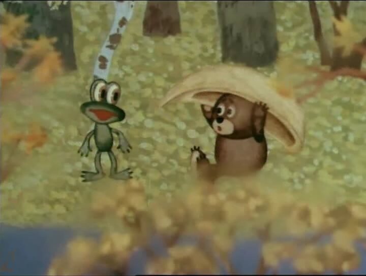 История о путешествии Медвежонка и Лягушонка за чудесным каштаном. Медвежонок и лягушонок построили лодочку и отправились на поиски каштана, чтобы поглядеть как он расцветает, потому что очень мечтали увидеть это. На пути им пришлось преодолеть препятствия: плыли против течения, а потом на них пыталась напасть щука. Всё же, друзья преодолели все преграды и приплыли. Но было уже поздно — каштан отцвёл. Медвежонок очень расстроился, но лягушонок утешил его, сказав, что на следующий год они снова приплывут сюда, уже пораньше.