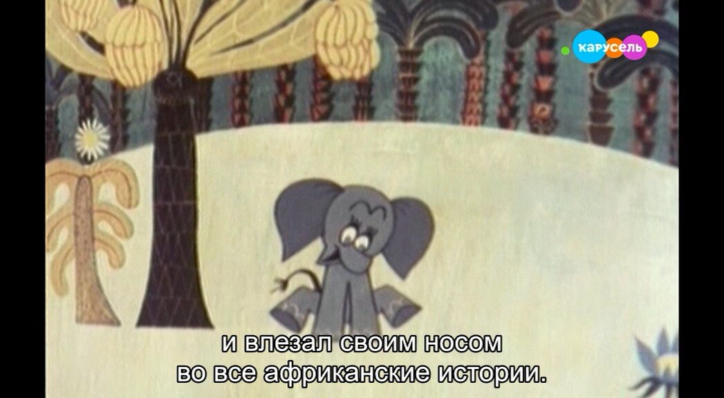Мультипликационный фильм по мотивам сказки Редьярда Киплинга про любопытного слоненка и про то, откуда у него появился хобот.