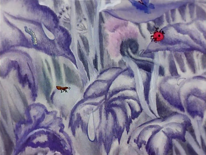 Блестящая ярко-праздничная работа Инессы Ковалевской. Детки, сами похожие на цветочки-колокольчики, попадают в огромный, пестрящий всеми цветами радуги луг-мир, наполненный радостно-танцующими стрекозами и бабочками и марширующими деловыми муравьями, веселый мир, где можно поиграть в догонялки с искрящимися солнечными зайчиками. А сердечный ритм этого светлого сияющего мира - изумительная музыка Сергея Прокофьева.