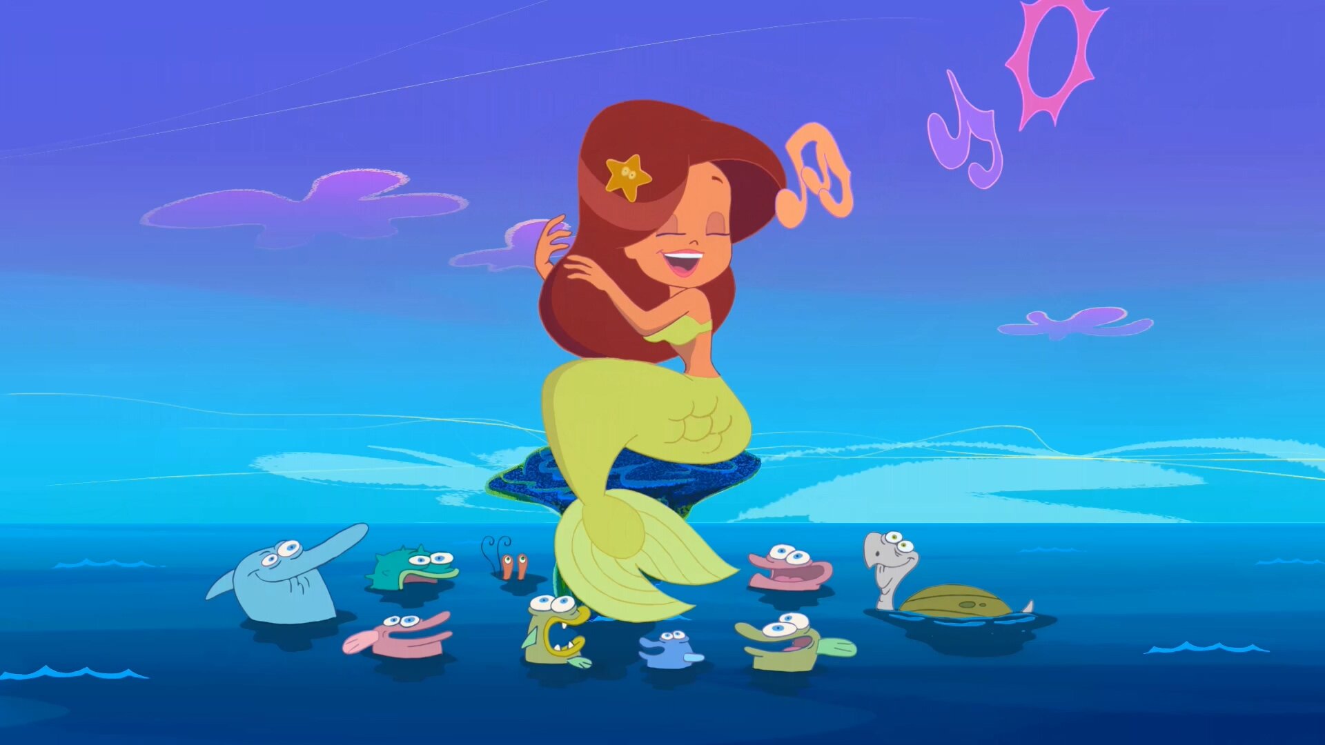 Зиг — всегда озлобленная и вечно голодная гиена. Он мечтает поймать прекрасную русалку Марину себе на обед. Чтобы заполучить ее, Зиг даже подружился с моллюском Берни, живущим неподалеку от желанной добычи… Но славной русалочке нечего бояться, ведь ей на помощь всегда готова прийти гигантская акула Шарко. Шарко бесстрашен и рад защитить свою подружку в любой ситуации!