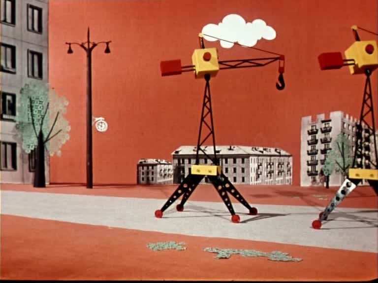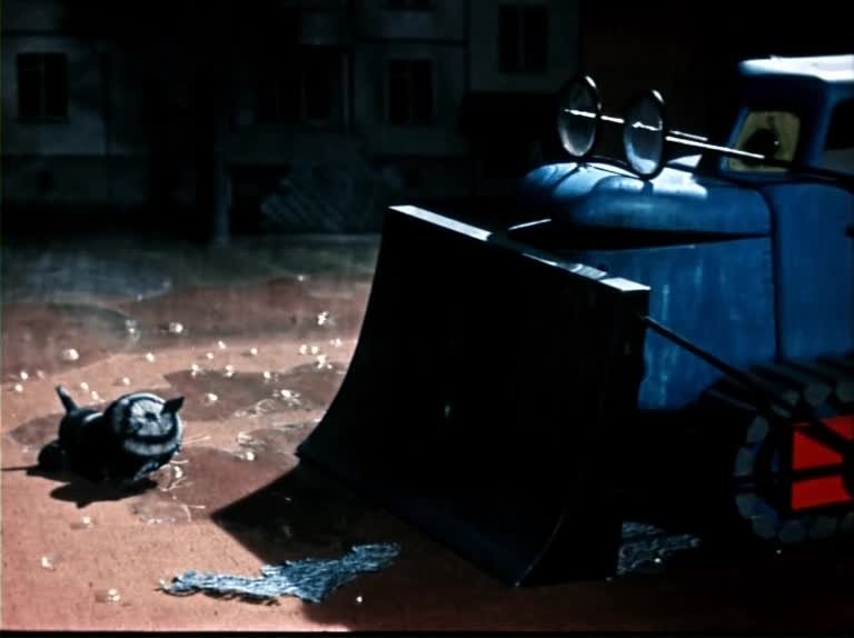 Мультипликационный фильм о том, как оставшийся без дома котенок становится свидетелем постройки нового современного здания строительными машинами. Котенок находит приют в построенном доме.