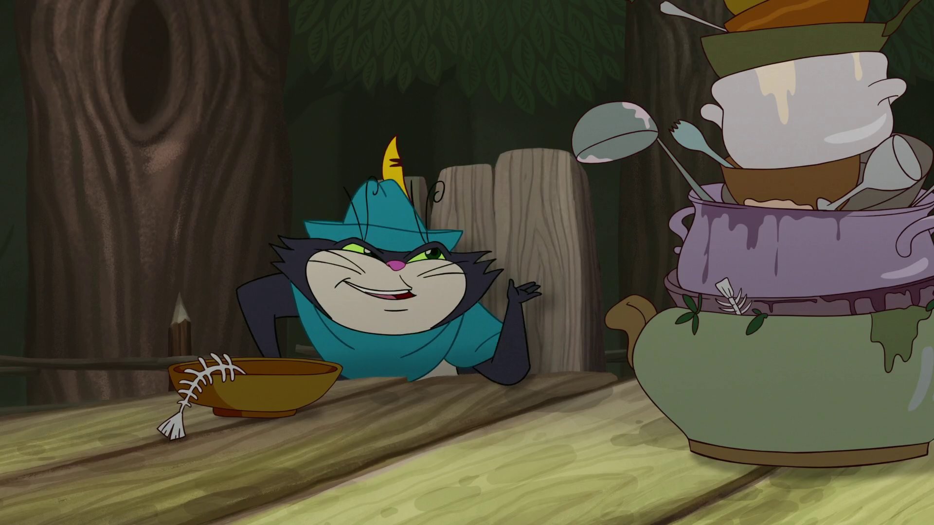 Среди высохших рек и выжженных лесов раскинулось Королевство, где не поют птицы, не доются коровы, а люди живут в постоянном страхе и нищете. А все потому, что 18 лет назад в результате дворцового переворота к власти пришли хитрые и жадные Министры. Неповиновение новым законам жестоко карается, и никто не осмеливается перечить Королевской охране. Никто, кроме благородного разбойника Трубин Гуда, который грабит Министров и раздаёт награбленное бедным. А помогают ему в этом его верные друзья: кот Зигмунд, пес Баскервиль, петух Петруччо и ослица Гретхен. В то время как жители Королевства слагают о нём легенды, а Министры готовы отдать за его голову любую награду, сам Трубин Гуд мечтает лишь о том, чтобы вернуть Королевство к прежнему процветанию.
