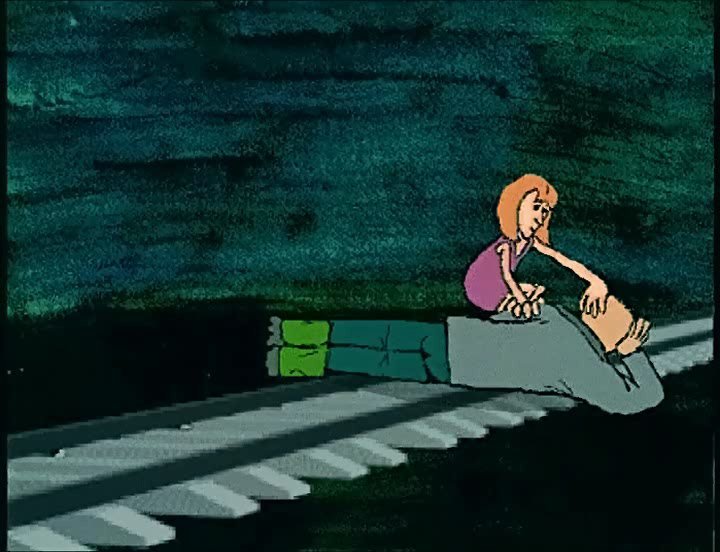 Мультипликационный кинофильм студентки III курса Марии Степановой о старике - проводнике, играющим в карты с собственным псом. Желая однажды их мирную потеху нарушили 2 "маньяка".