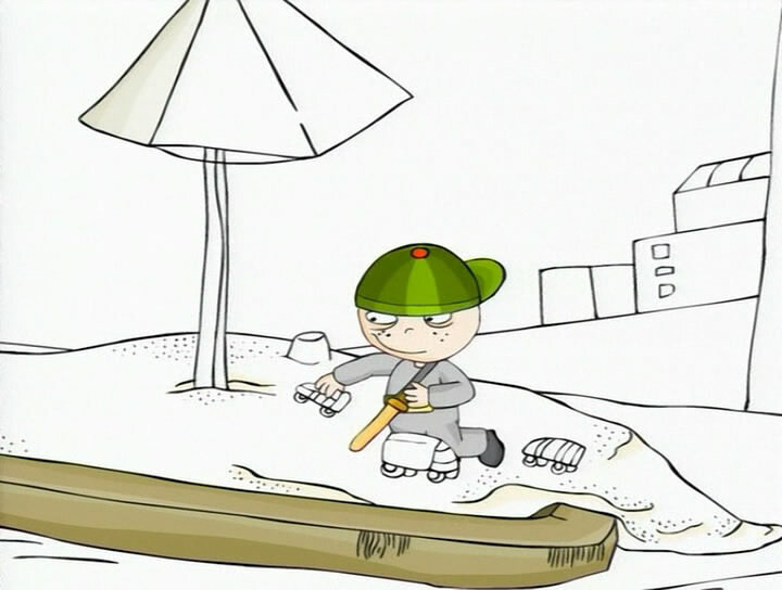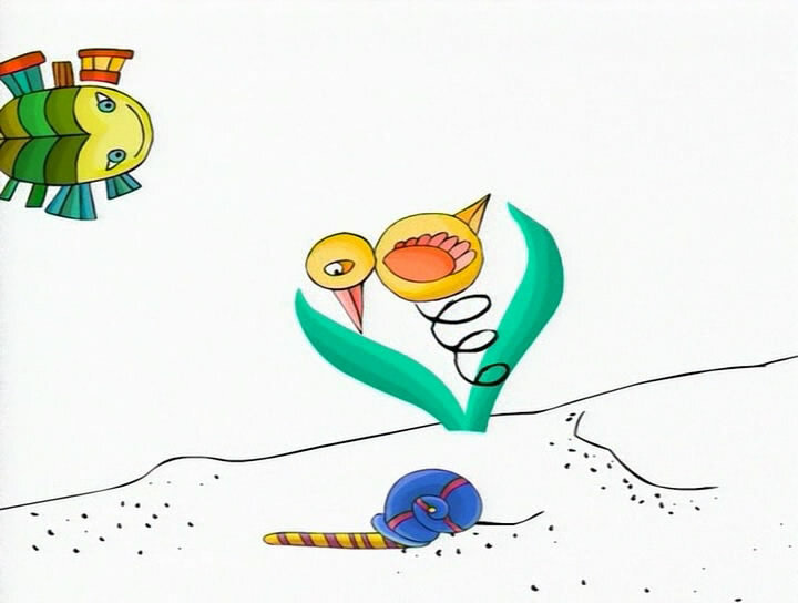 Девочка с торчащими косичками ходит и удивляется всему, что встретит или увидит на пути. Фантастические песочные замки в песочнице, где растут цветы, божья коровка, отправляющаяся, в путешествие, машинки, похожие на замысловатые сосуды, разноцветные ступеньки, которые невозможно сосчитать – разве так бывает?
