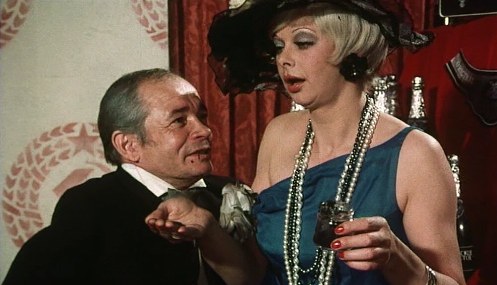 Насколько же прозорливыми оказались ещё в начале 70-х годов тогдашние западногерманские кинематографисты, представив в виде эротического фарса историю вхождения в рыночные отношения молодого и инициативного колхозного предпринимателя Петра Чехова, а также трёх деревенских девушек - Наташи, Веры и Ольги. Они по ошибке, но не без удовольствия, а тем более - с коммерческой пользой для себя стали выполнять прихоти заграничных состоятельных господ и прочих спонсоров. Стиль и художественный уровень этой ленты, разумеется, соответствуют её бесцеремонно-глупому названию, которое оставит в недоумении простых потребителей эротической продукции (“причём тут какая-то Ниночка, вовсе не удосужившаяся появиться на экране и снять свои штанишки!”). Намёк на знаменитую романтическую комедию “Ниночка” Эрнста Любича о красивой женщине-агенте НКВД всё-таки звучит пошло, даже оскорбительно, хотя прежде в нашей прессе эту классическую картину 30-х годов с незабвенной Гретой Гарбо вообще подозревали в антисоветской пропаганде. А фильм “... и Ниночка снимает свои штанишки”, якобы развенчивая миф о нравственно стойких советских комсомолках, которые, на самом-то деле, чувствуют себя в борделе лучше, нежели на сельскохозяйственной выставке, теперь может возмутить лишь из-за своей тупости и крайней удалённости от какого-либо проявления искусства. Но прогноз-то об “экспорте женского тела” из России на Запад подтвердился - и как тут не снять перед авторами этой безделушки... ну, хотя бы свои шляпы!