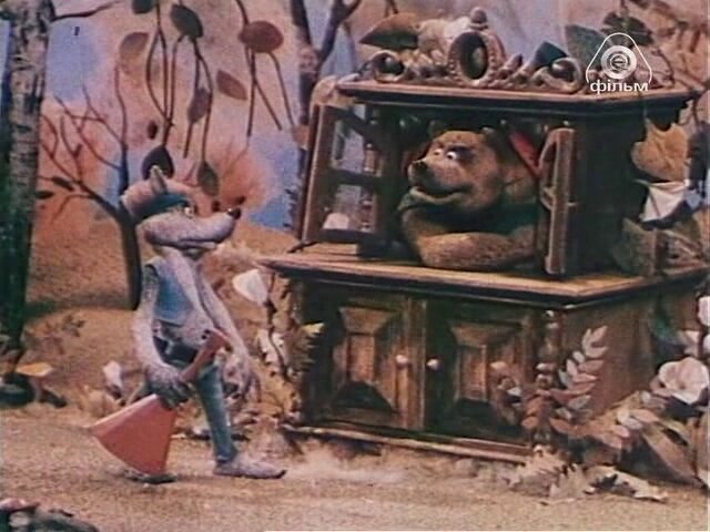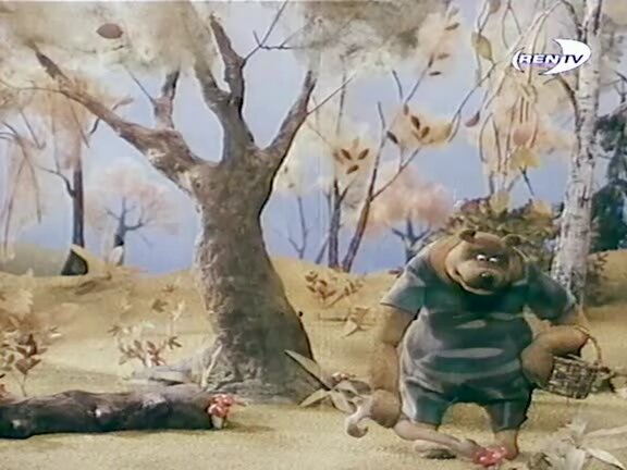 Одна из мультипликационных версий известной русской народной сказки с альтернативным сюжетом - жадный медведь не пускает к себе в "теремок" других зверей.