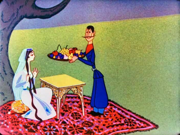 Мультипликационный фильм - легенда о любви княжны Нателы и гончара Зураба.