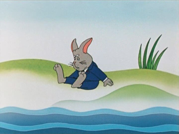 Мультипликационный фильм про глупого зайца, который любил всем давать советы: корове – как надо бодаться, гусеницу – с какой ноги ходить, щуренку – как плавать, волку – как поймать быка, бобру – как тонуть.